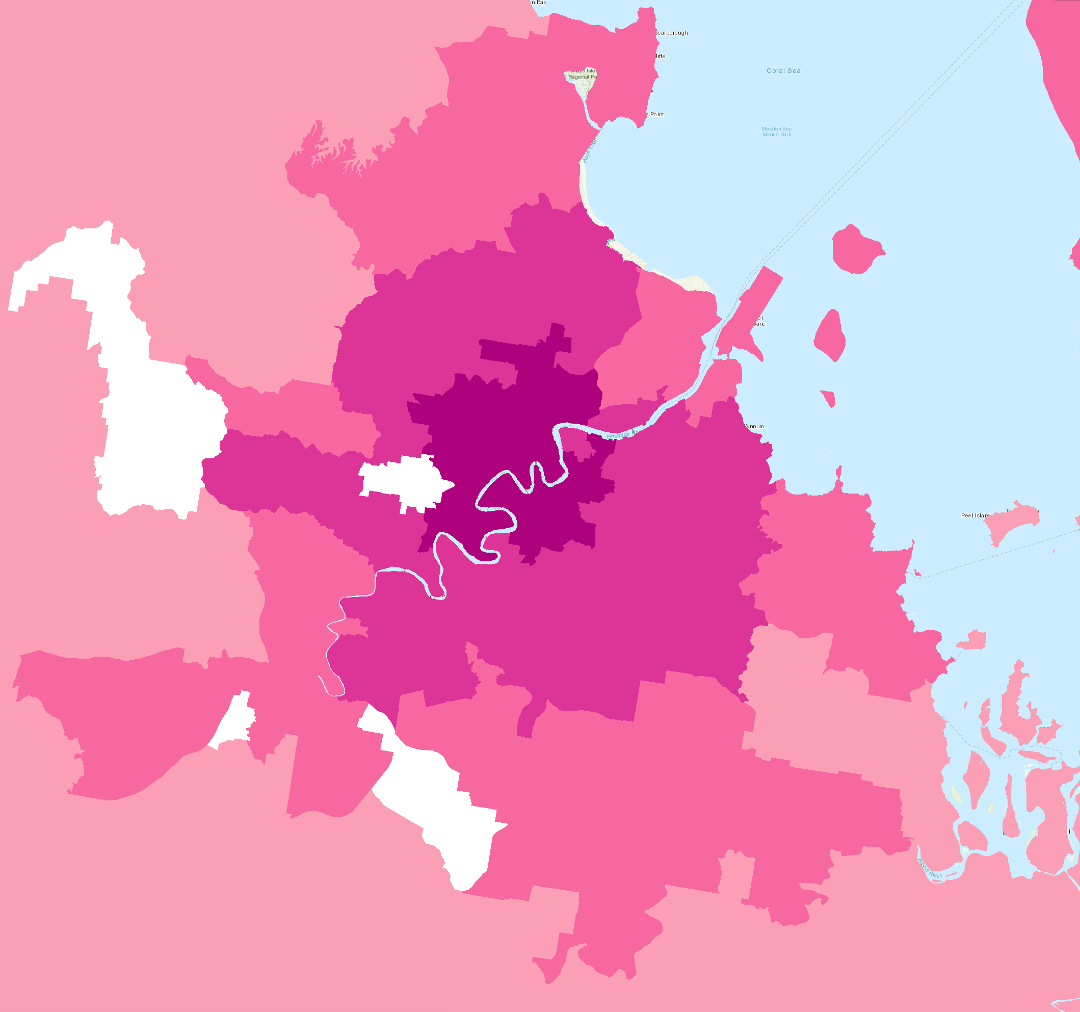 Commute map courtesy Australian Bureau of Statistics | Esri, HERE, Garmin, USGS, NGA | ABS